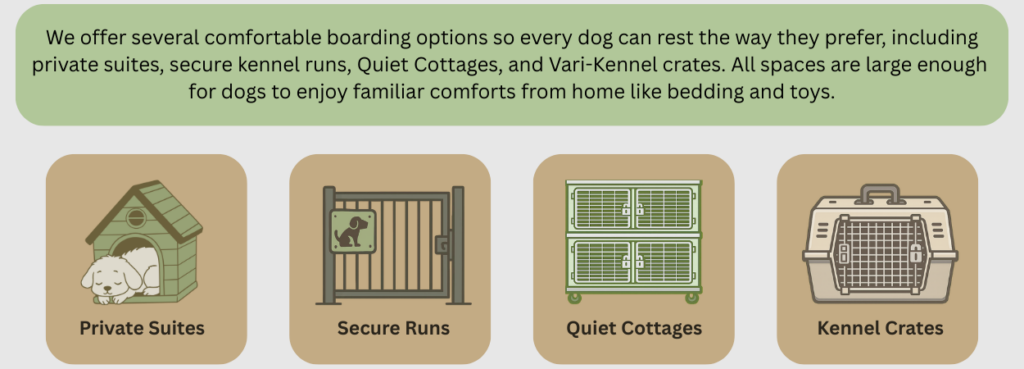 Boarding options designed for comfort, safety, and restful stays.